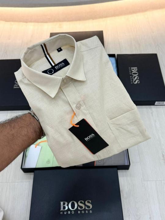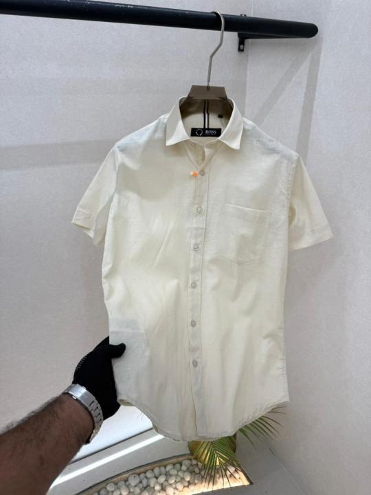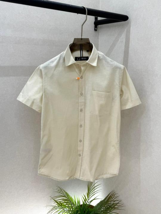 Hugo_Boss Beige Premium Half Sleeves Shirt With Brand Box Packing F3579-BE